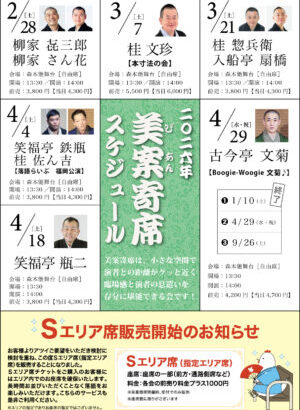 2026年 美案寄席・お多福寄席 スケジュールを更新